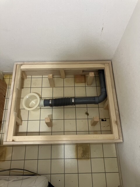 高槻市にて、古い洗濯チャンバーを取り外し、新しく防水パンへ交換させていただきました。