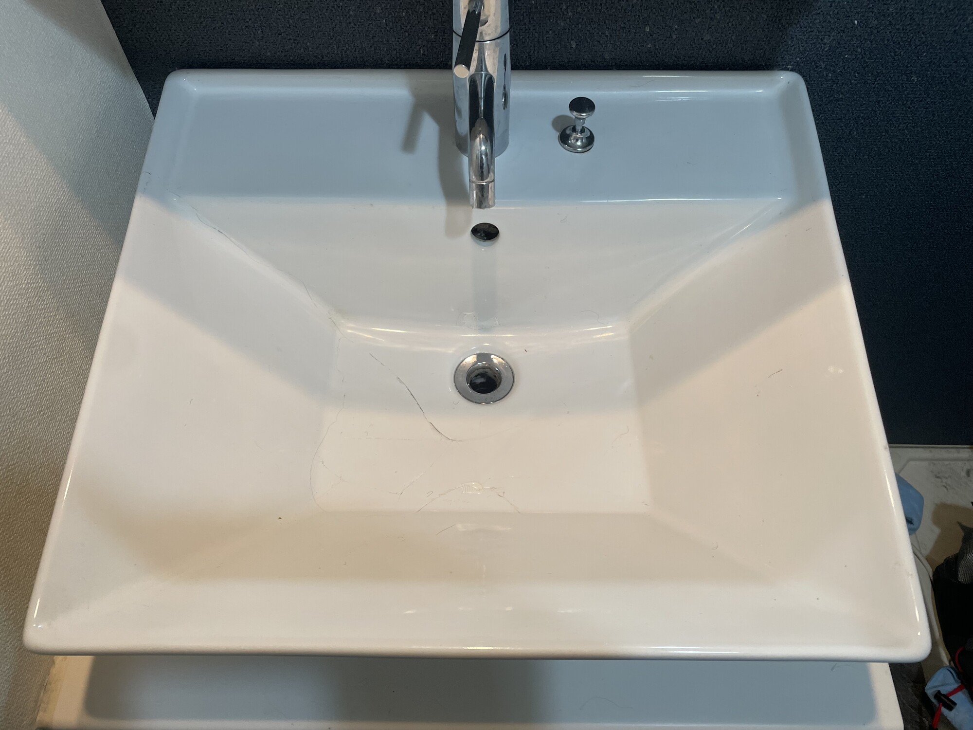 今回の洗面ボウルは、使用年数による劣化と衝撃の影響で、